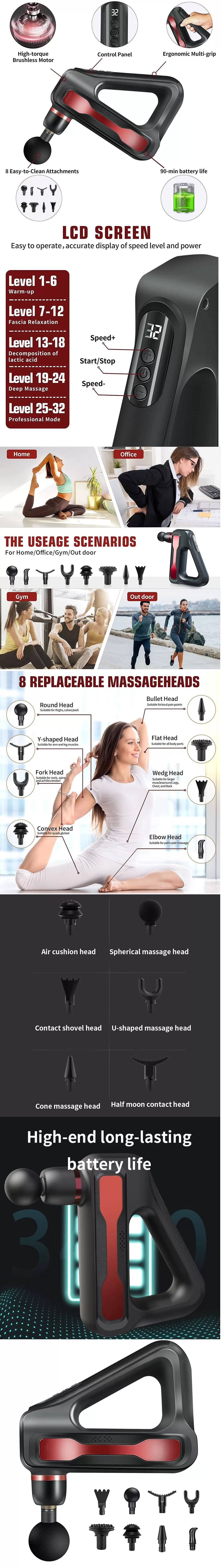 ✅ سرعة عالية ومحرك قوي وقوة قوية تضرب مباشرة العضلات العميقة 32 سرعات